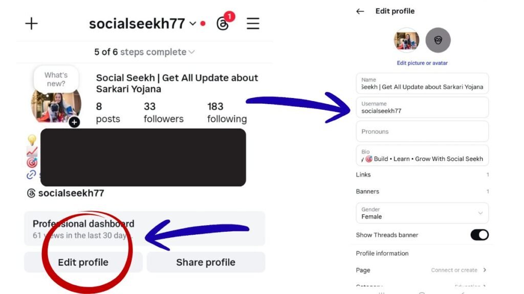 जब आप Profile page पर आएंगे तो यहाँ आपको Edit का Button देखेगा उस पर tap करें जिस से आप अपनी profile मे mention की गई info को edit कर पाएंगे.