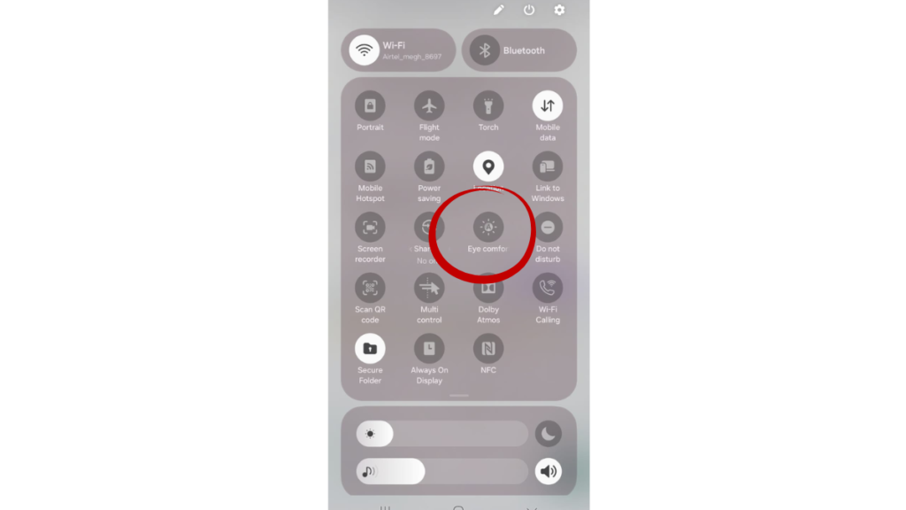 2. Dark Mode आइकन पर टैप करें आपकी mobile मे eye comforter ya dark mode किसी भी नाम से हो सकता है